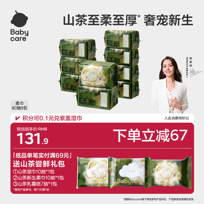 babycare山茶柔巾婴儿童一次性洗脸巾超柔加厚 下拉详情领优惠