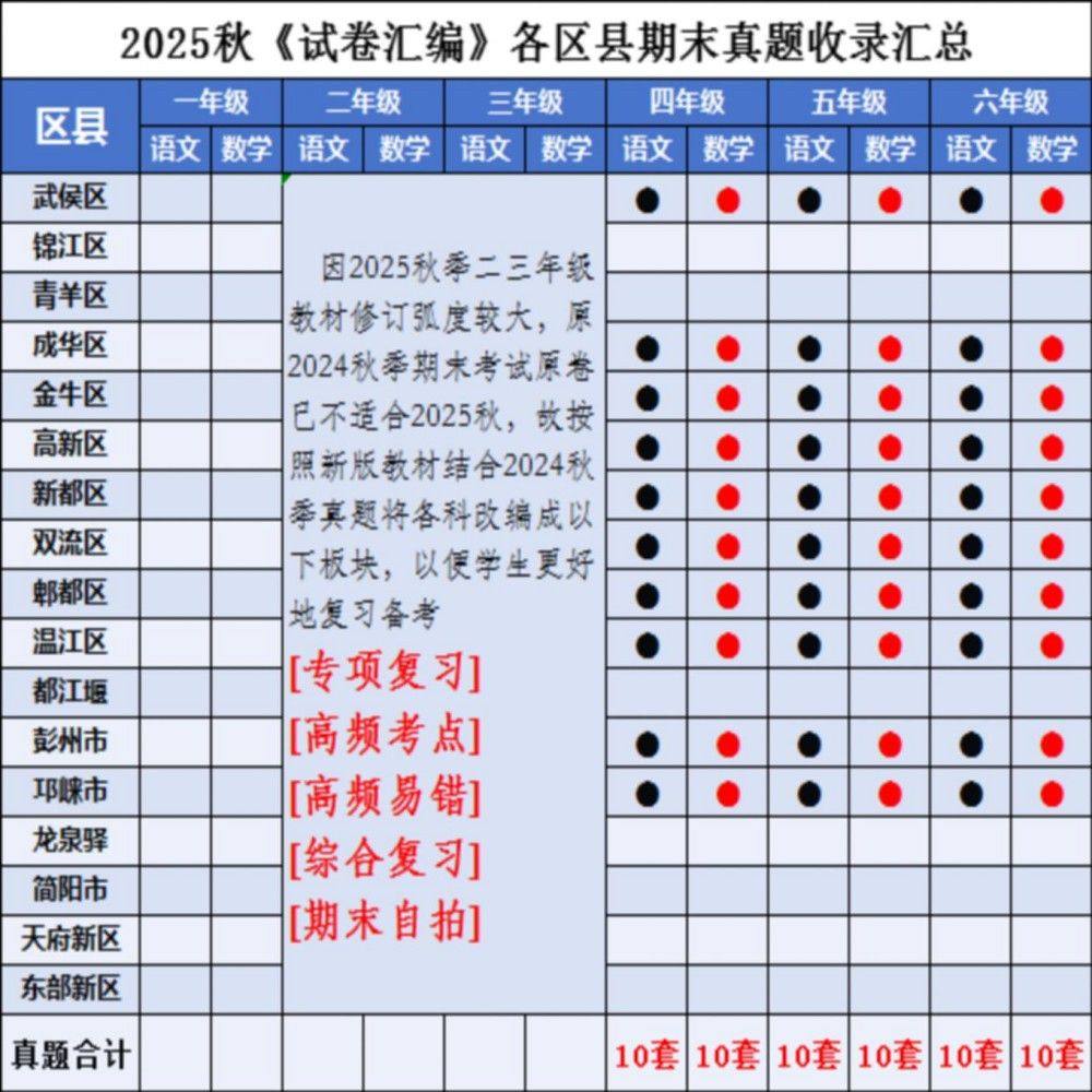 一二三四五六年级上册下册语文数学人教北师版 2025秋小学期末试卷汇编成都专版 名校真题期末调考冲刺卷 成都专版