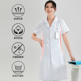 防酸碱医学生白大衣实验室隔离衣工作服夏季 白大褂女短袖 医生长袖