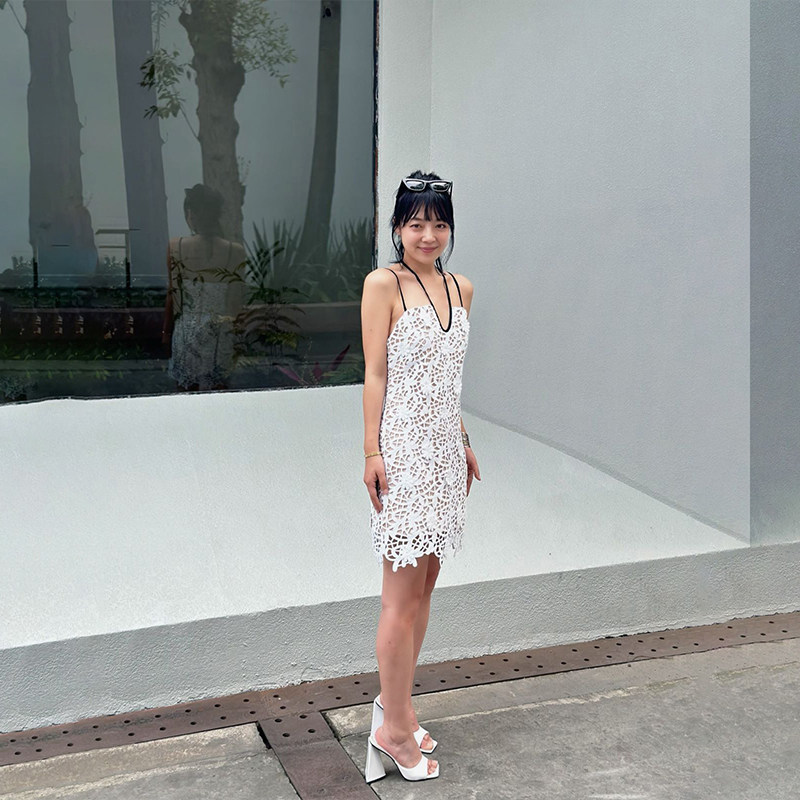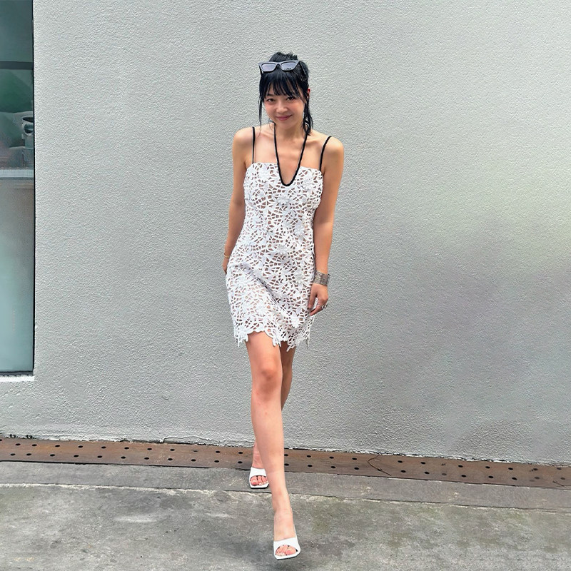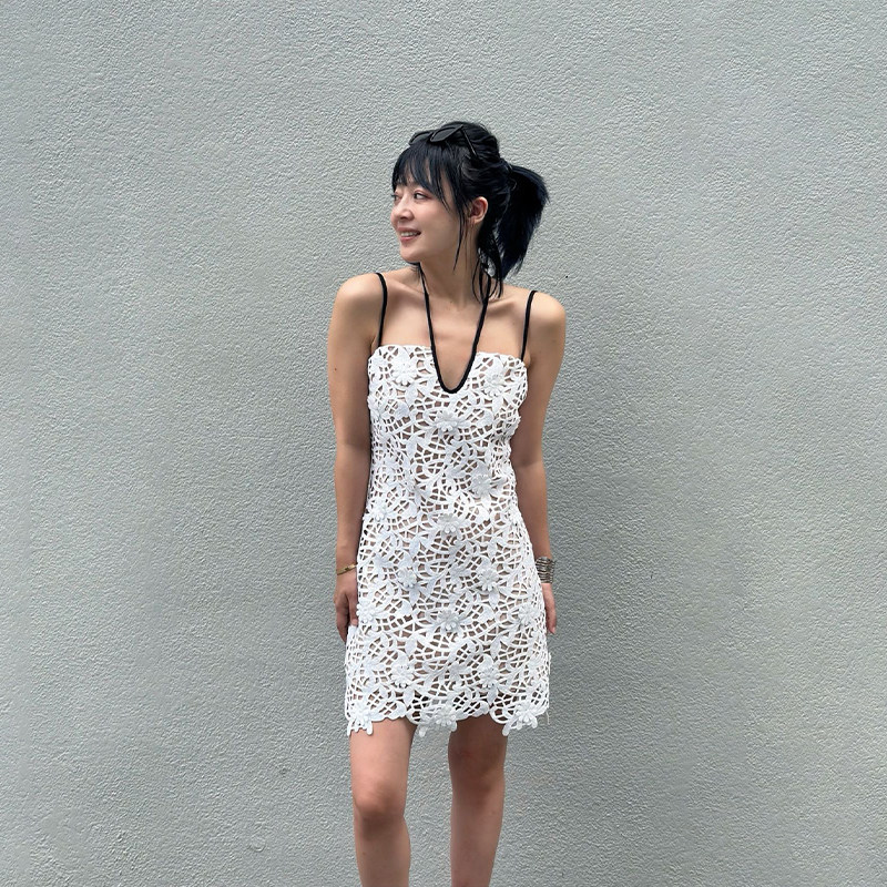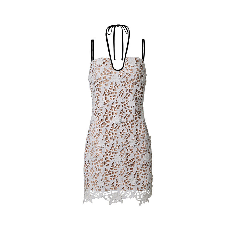 LEDIM 设计师原创高级感吊带裙 WANG蕾丝镂空连衣裙女2024春夏新款