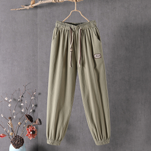 纯棉韩版 大码 裤 九分裤 显瘦哈伦裤 棉麻2026新款 子宽松休闲裤 女夏季