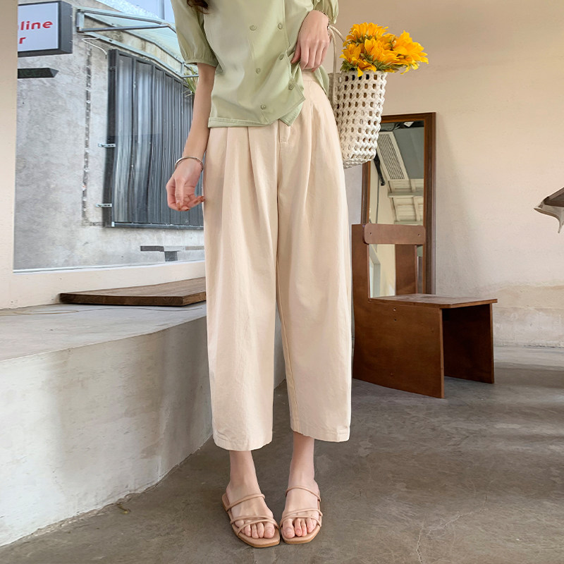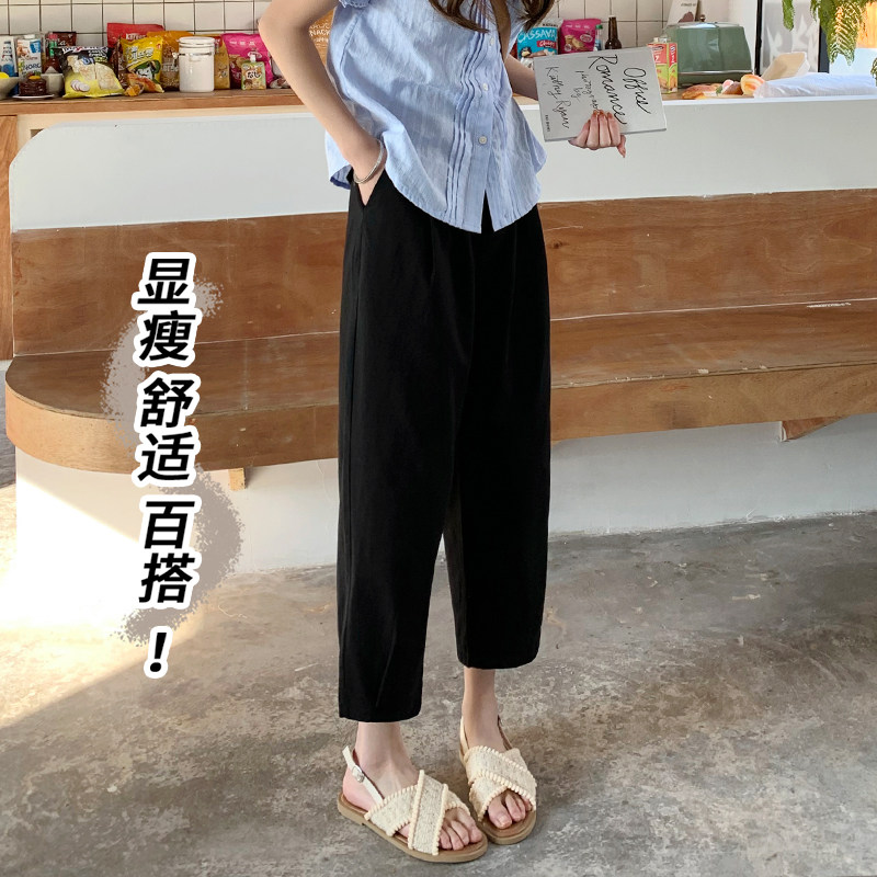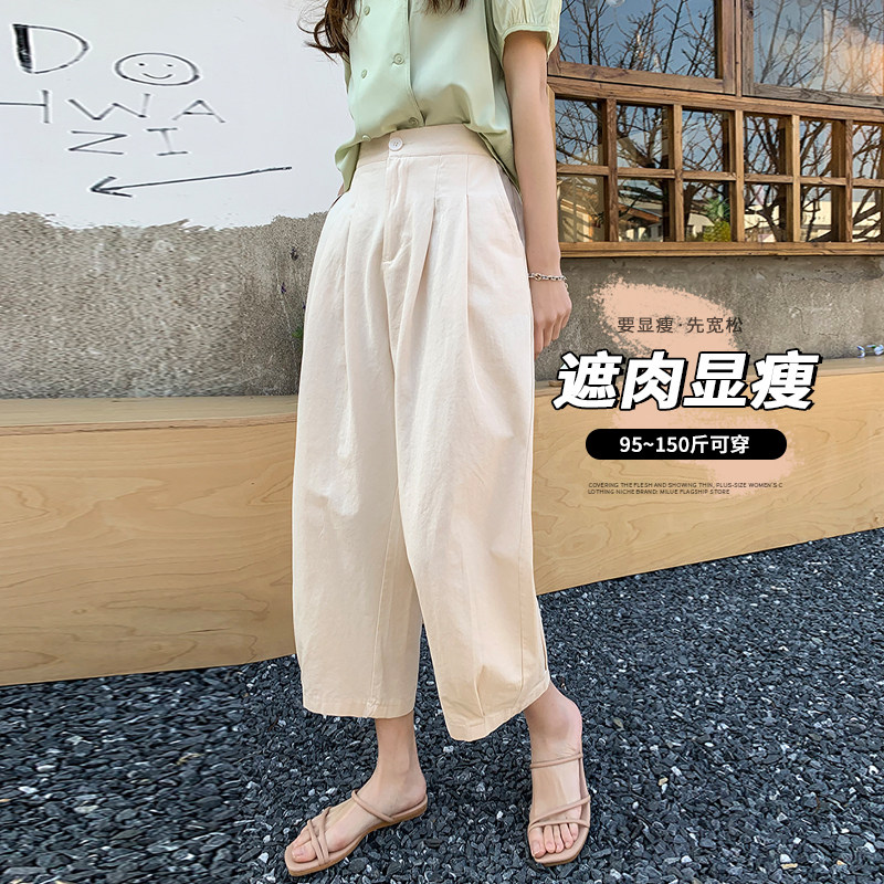 棉麻阔腿萝卜裤 大码 胖mm宽松显瘦直筒九分裤 女夏季 子 多巴胺休闲裤