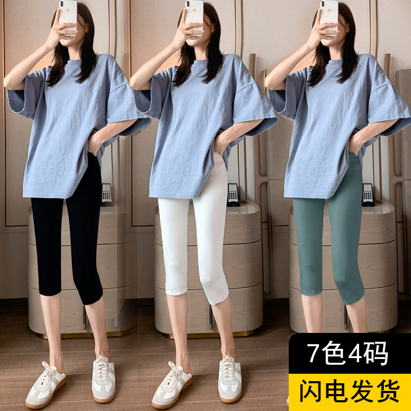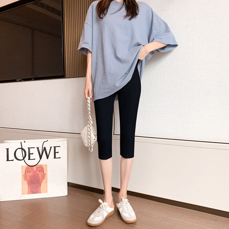 高腰纯色打底裤 弹力显瘦大码 薄款 莫代尔女夏外穿紧身防走光七分裤