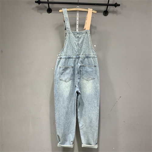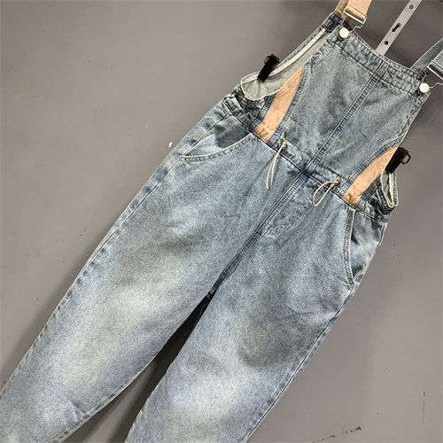 百搭撞色设计连体裤 新款 24夏季 欧洲站显瘦牛仔高腰抽绳收腰背带裤