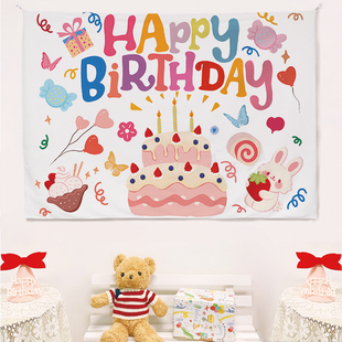 小红书ins儿童周岁生日快乐背景布男女孩宝宝挂布布置场景装 饰