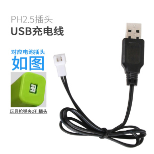 赛博朋克电动连发水枪弹夹模块电池充电线3.7V白插头2孔XH2.5充电