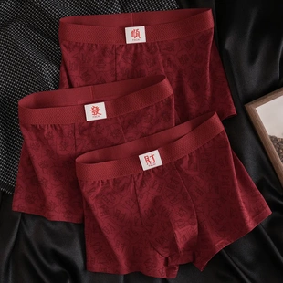 内裤 棉质酒红色男士 抑菌吉言印花红内裤 新年喜庆XD 下单立减50