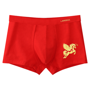 大红色属马年礼物秋冬四角短裤 男纯棉平角裤 头 内裤 浪莎本命年男士