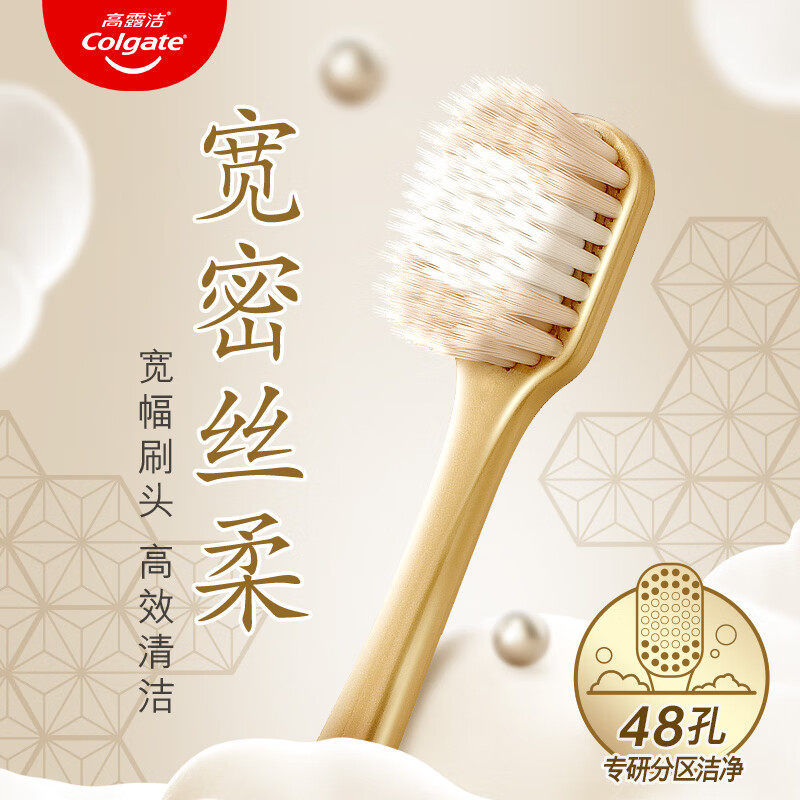 高露洁成人宽密丝柔软毛牙刷2支 1板柔密护龈高效深洁分区洁净