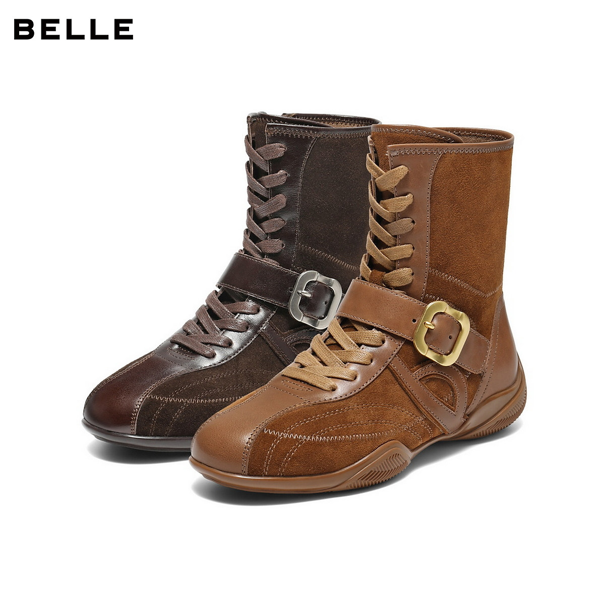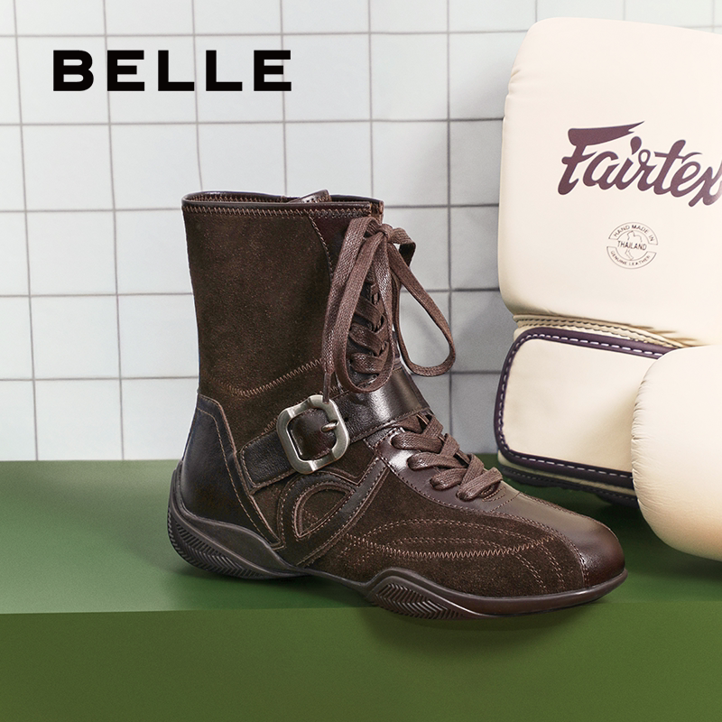 休闲短靴E5R1DDZ5 新款 百丽运动风拳击靴厚底西部靴子女鞋 冬季