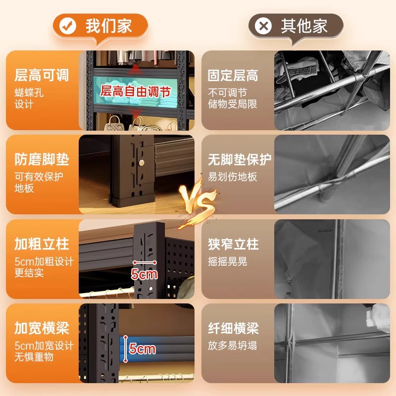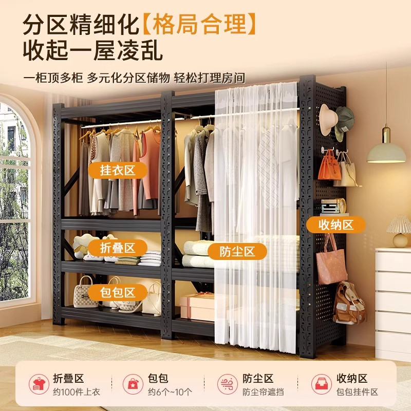 开放式 家用卧室出租房用收纳钢制落地洞洞板衣柜 货架衣柜简易组装