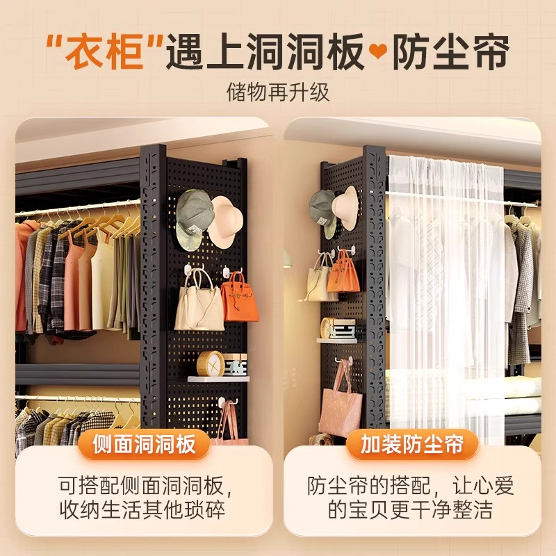洞洞板衣柜家用简易组合落地衣架小户型卧室衣帽架开放式 置物衣架