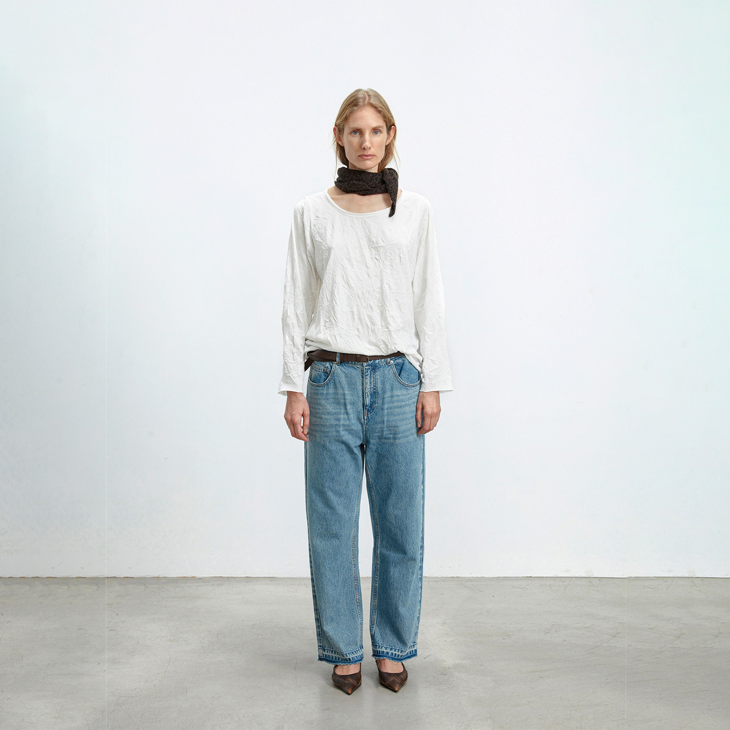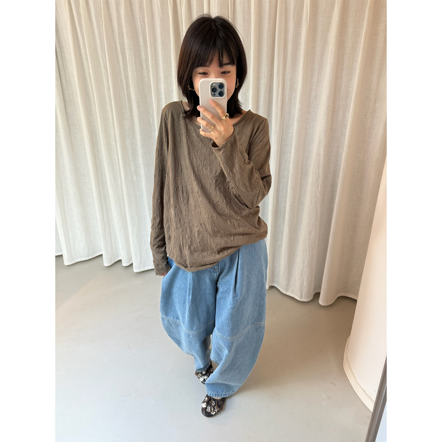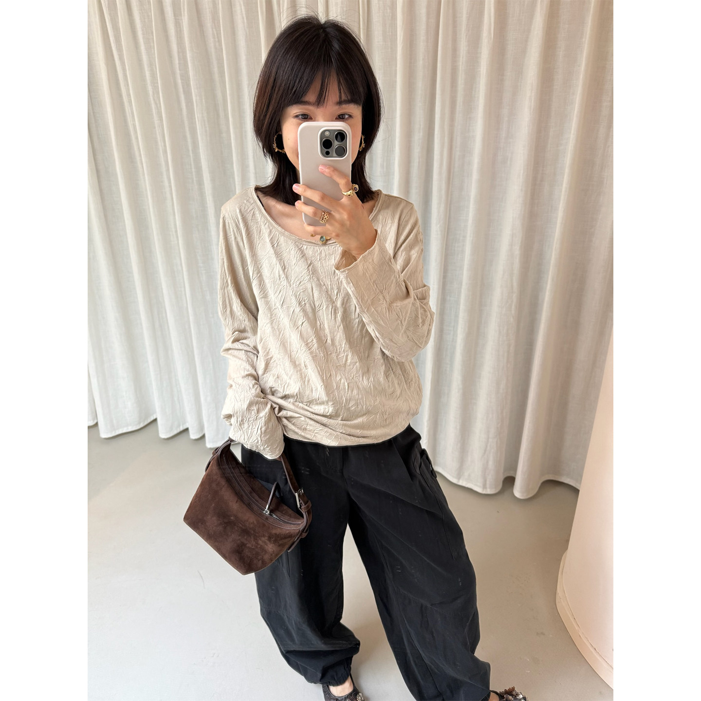 25FW休闲大圆领褶皱长袖 T恤上衣女 SHIRT COTEMP