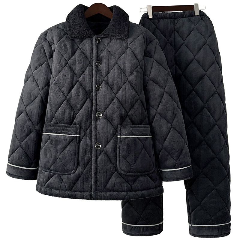 爸爸保暖棉袄套装 珊瑚绒夹棉加厚加大码 家居服 睡衣冬季 中老年男士