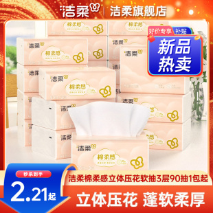 洁柔棉柔感立体压花软抽3层90抽无香抽纸面巾纸家用实惠装