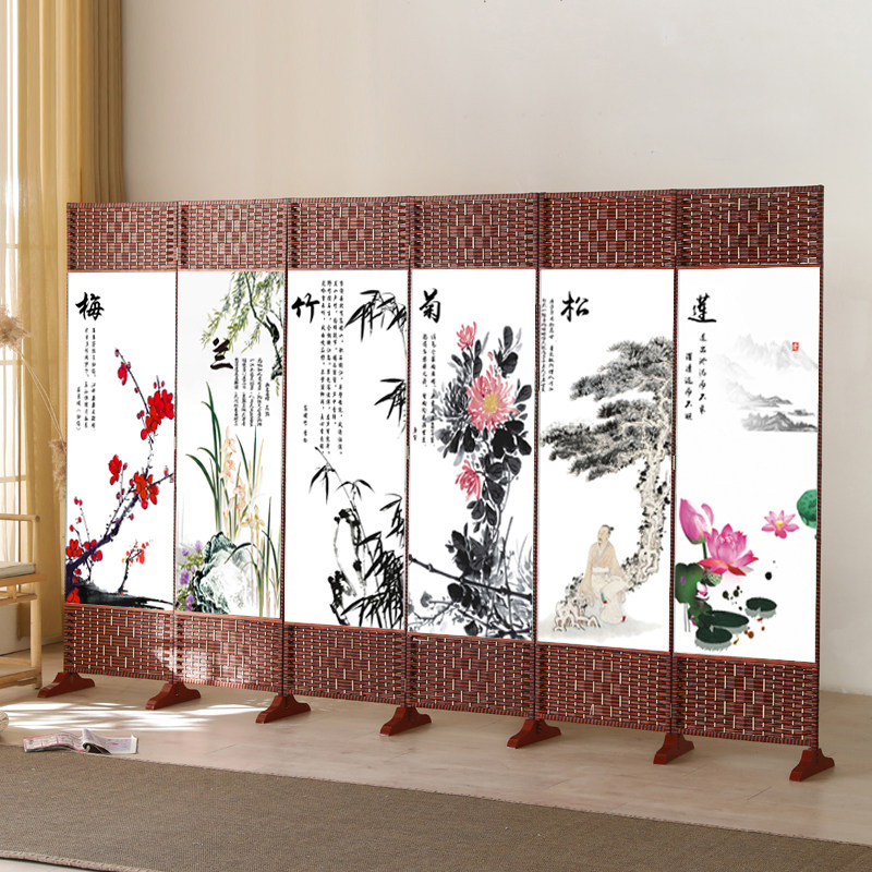 竹编实木屏风隔断折叠新中式 玄关客厅隔断卧室折屏阳台屏风试衣间