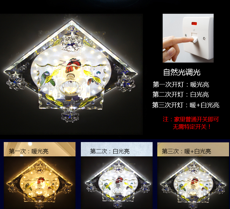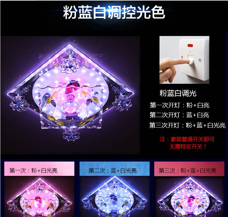 射灯七彩正方形过道灯水晶走廊灯个性 入户玄关灯led筒灯创意