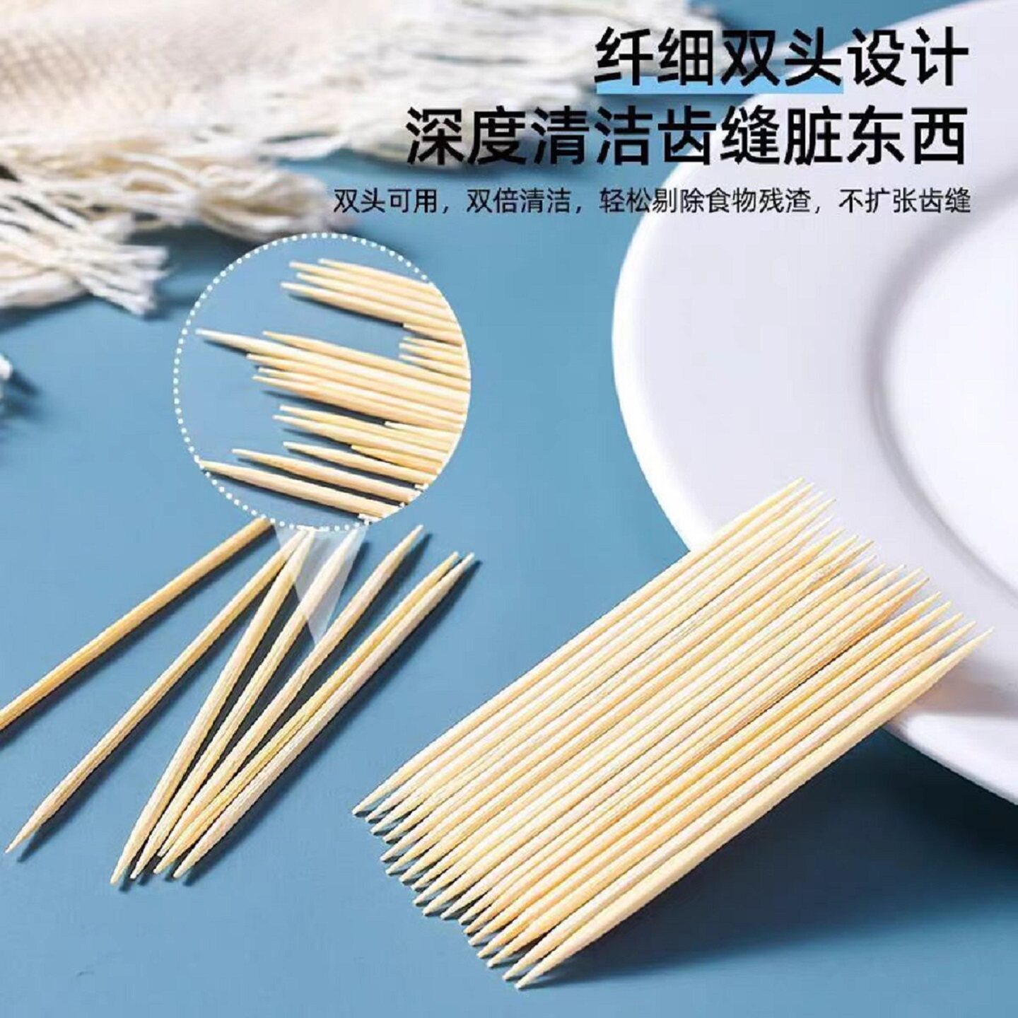 牙签家用一次性双头精细竹牙签高档牙签盒剔牙神器酒店餐厅水果签