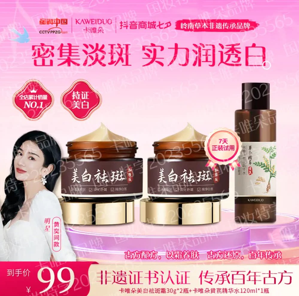 国货美白祛斑霜保湿 黄奕推荐 官方正品 身体 卡唯朵非遗传承品牌