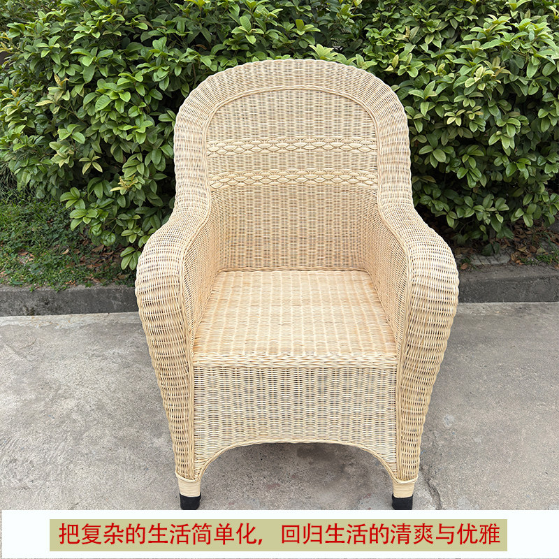 天然真藤编沙发藤椅单人家用阳台客厅老人靠背中式 室外椅 圈椅老式