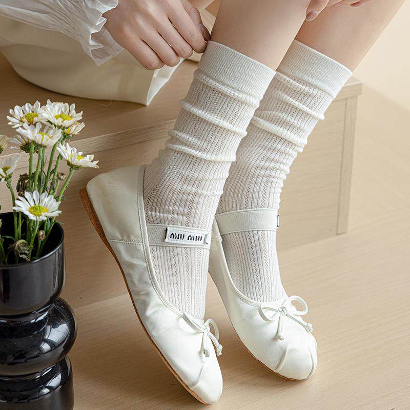 芭蕾风白色袜子女中筒袜春夏薄款 堆堆袜 无骨网眼透气长袜夏季