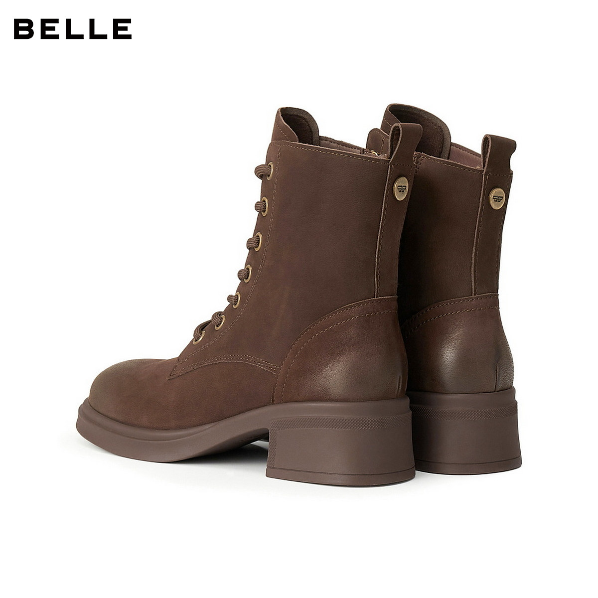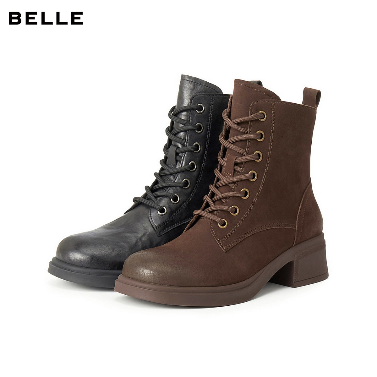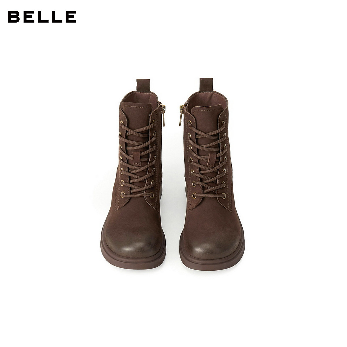 百丽英伦风羊皮马丁靴子女冬季 粗跟增高短靴子3NW45DD5 加绒新款