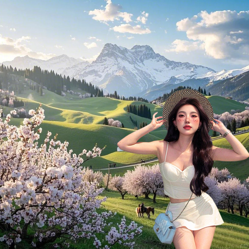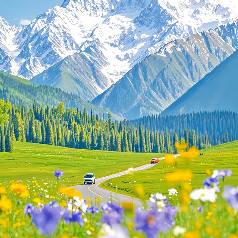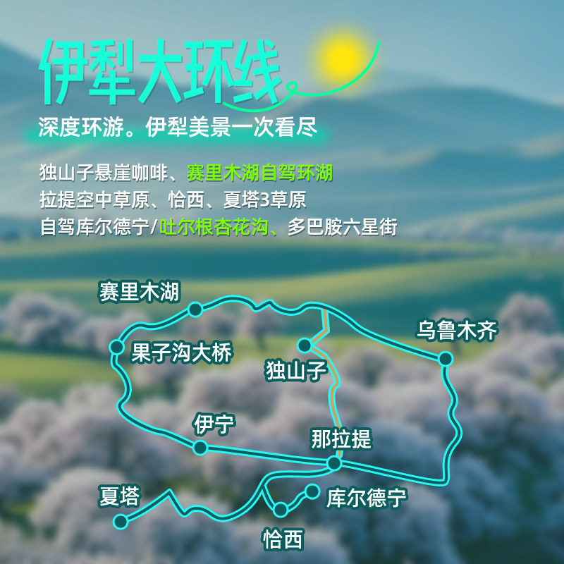 伊犁杏花新疆旅游8天小团旅拍>自驾库尔德宁那拉提赛湖悬崖咖啡