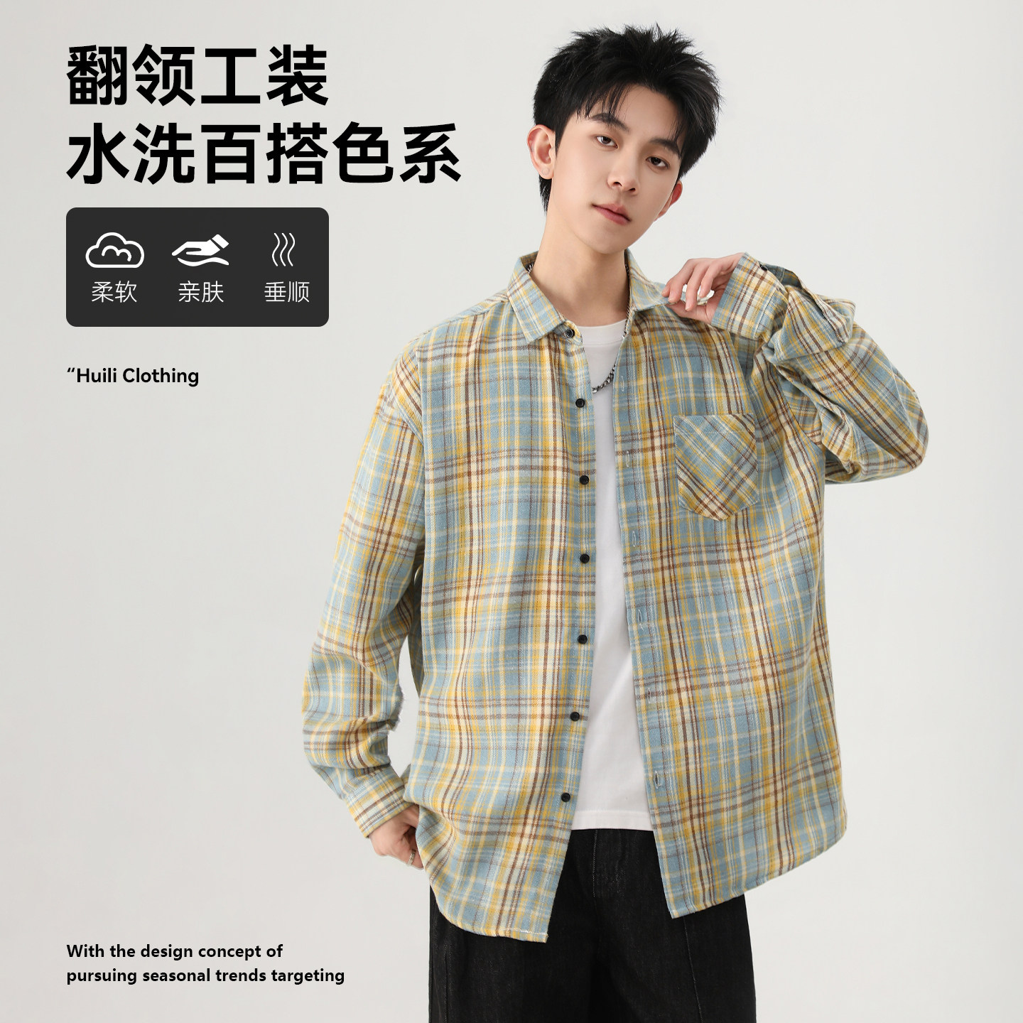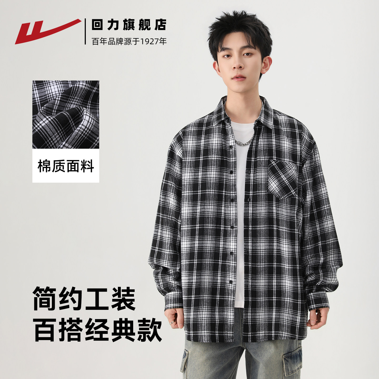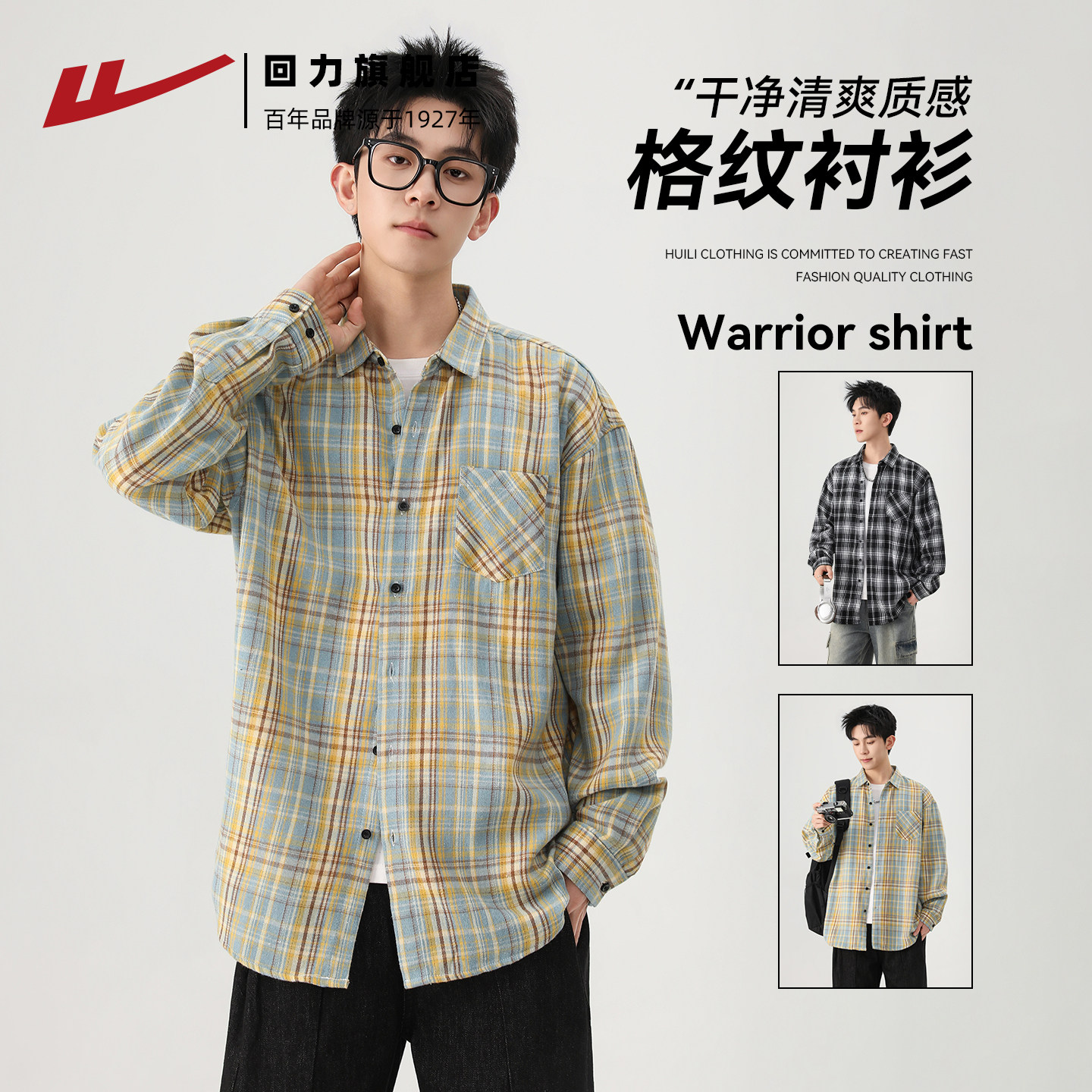 高级感痞帅休闲男款 回力格子男士 长袖 衬衣2026新款 外套上衣 衬衫
