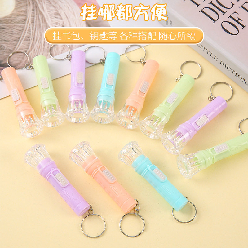 马卡龙色小手电筒带钥匙圈透明迷你小手电筒电子发光玩具儿童礼物