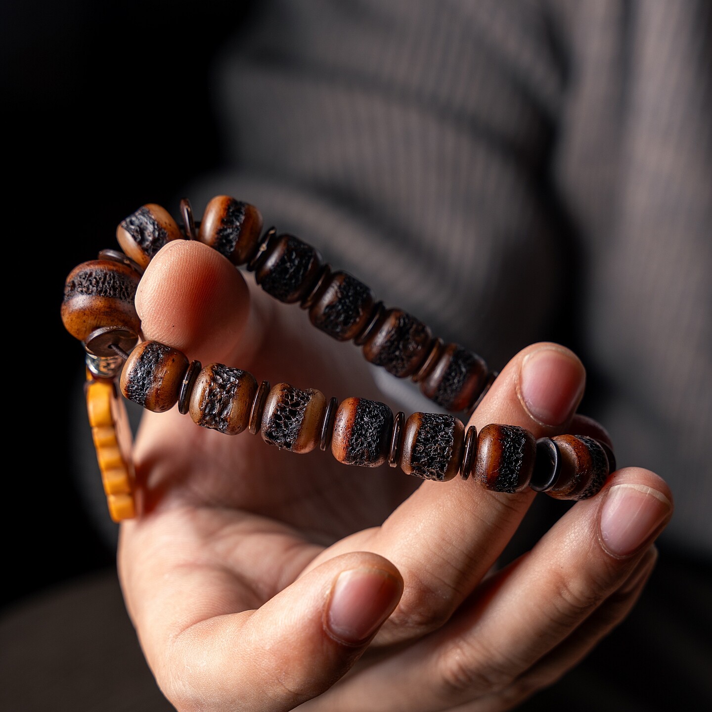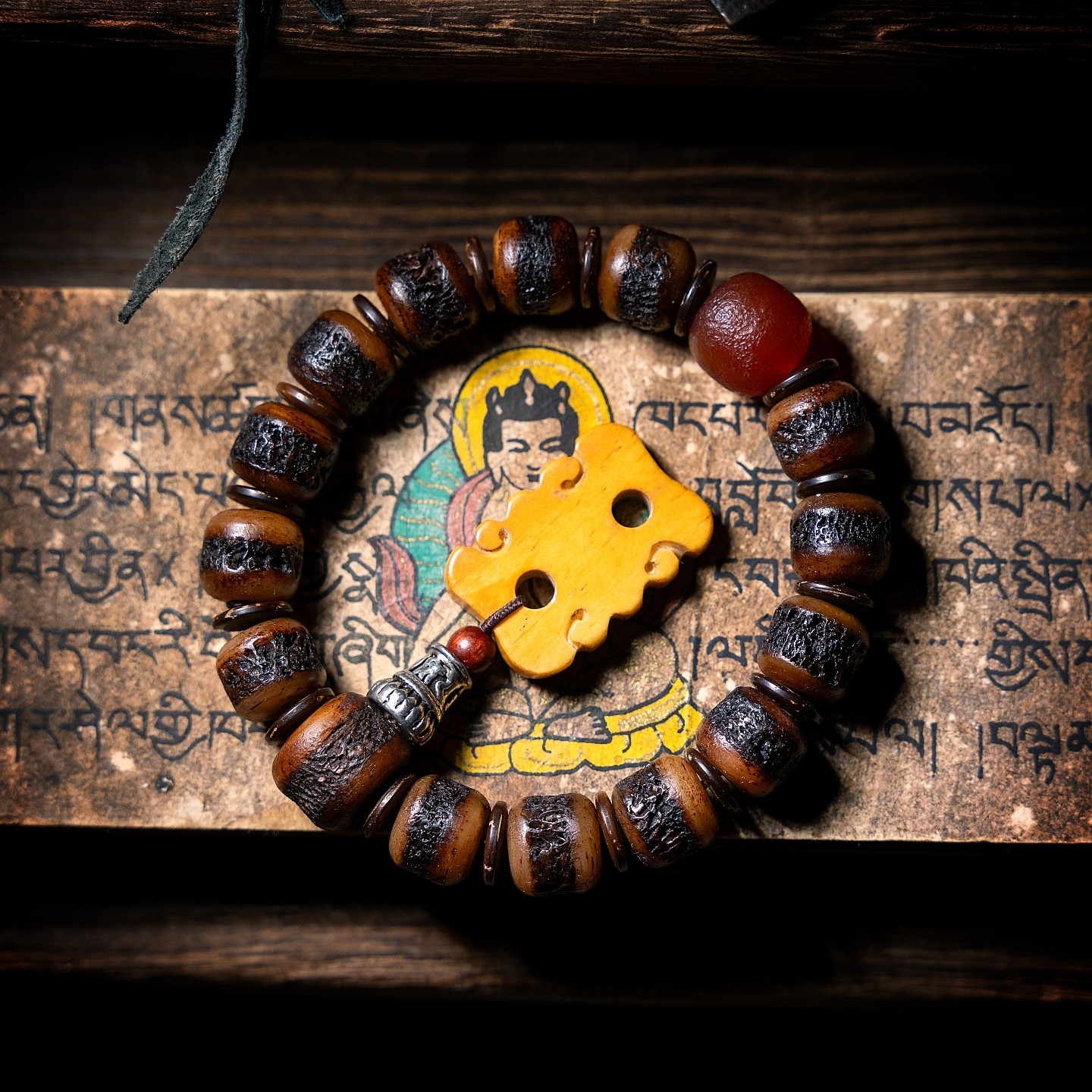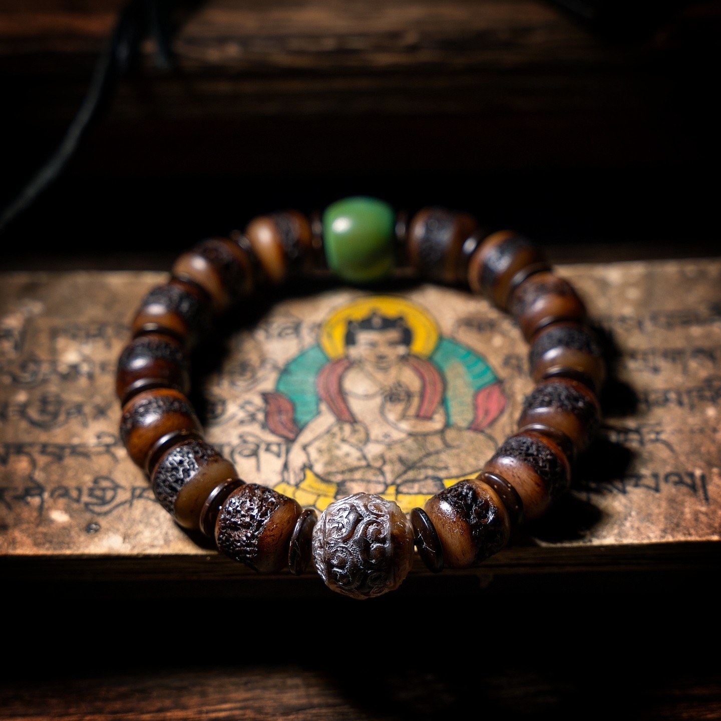 卡杰格朵.原创设计嘎嘎西藏藏传佛珠手串老料牦牛骨灵骨文玩手链