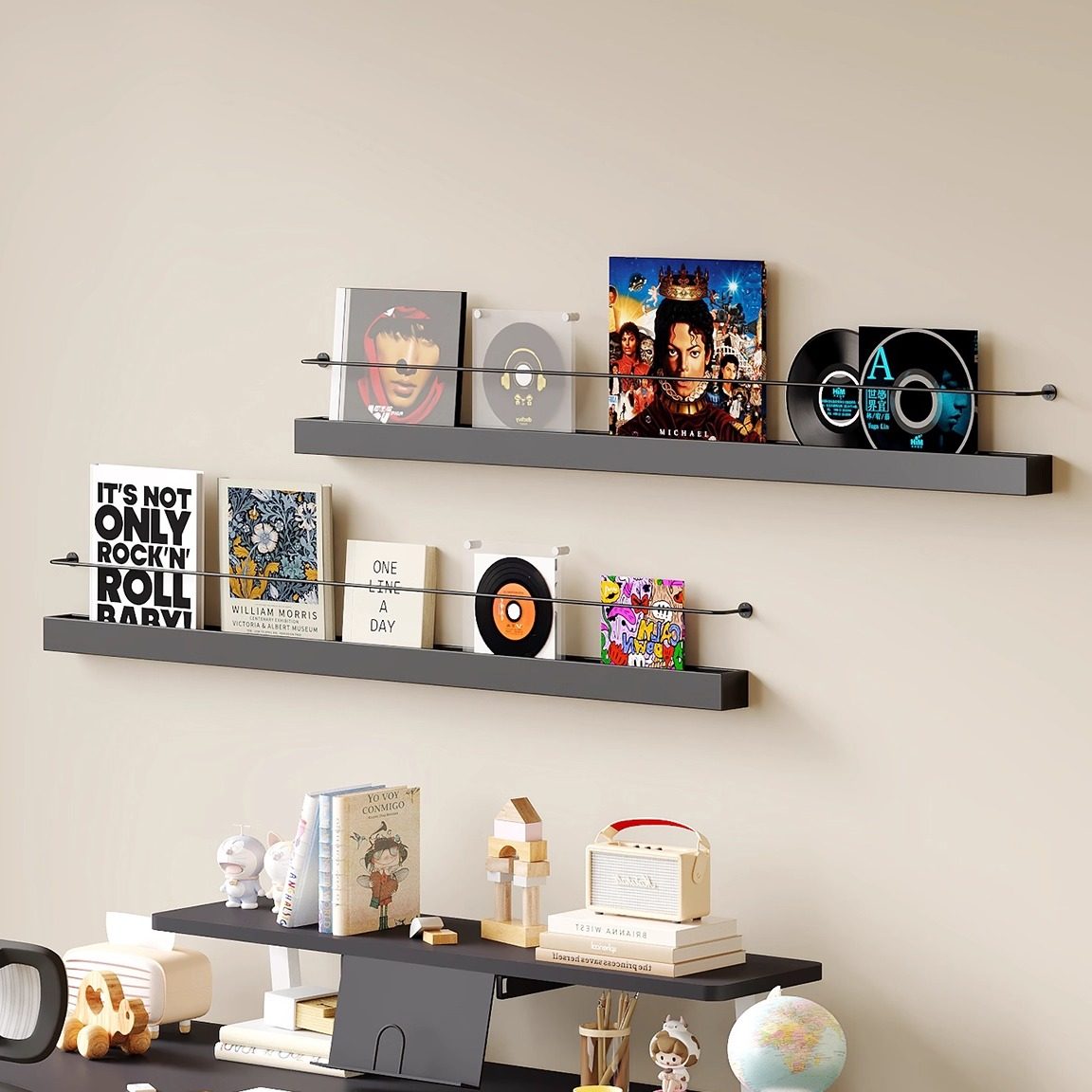 北欧铁艺书架杂志架一字壁挂墙上创意简约绘本报刊收纳置物展示架