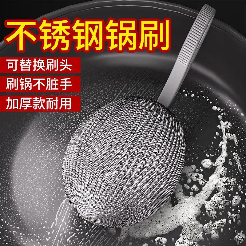 大号钢丝球不锈钢清洁球不掉丝家用铁丝球厨房刷锅带手柄洗碗神器