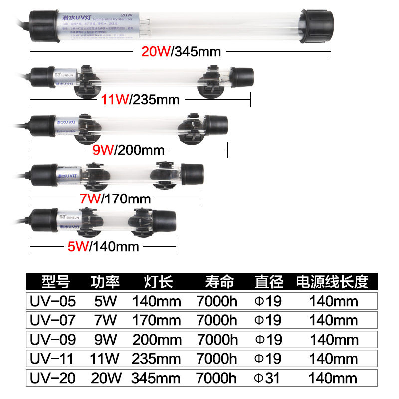森森鱼缸UV杀菌灯紫外线鱼池净水潜水灭菌灯水族箱消毒鱼缸杀菌灯