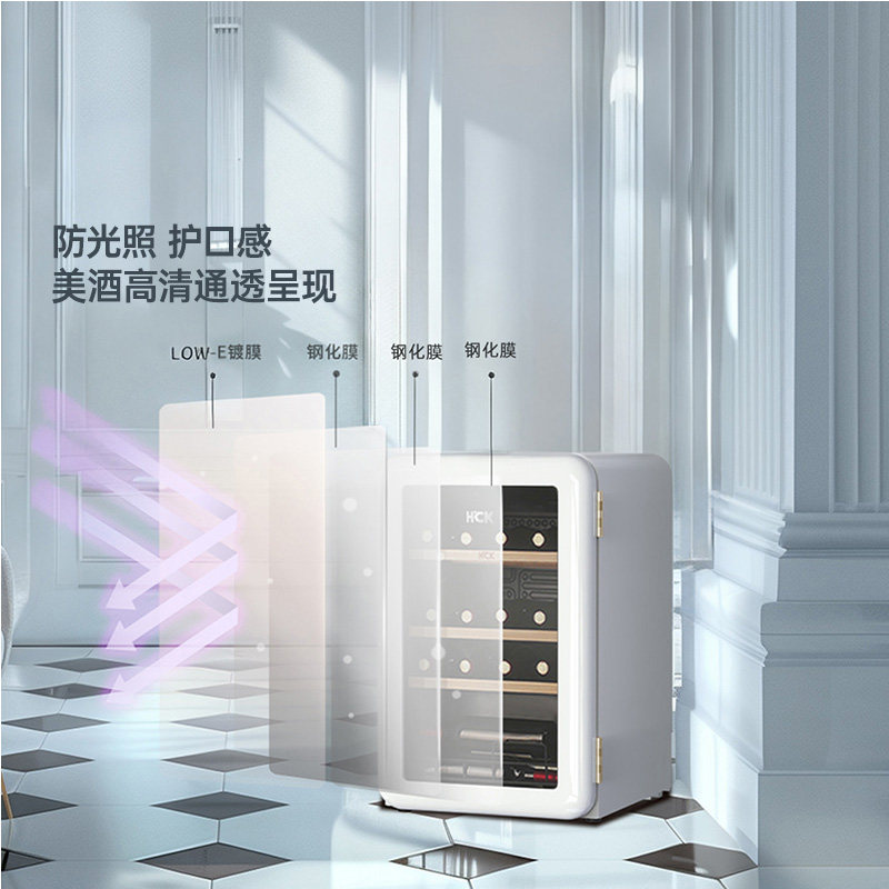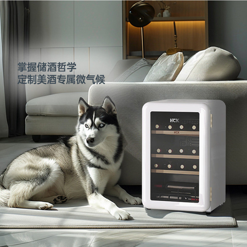 HCK哈士奇复古红酒柜恒温恒湿家用嵌入式 小型冰吧超薄冷藏冰箱