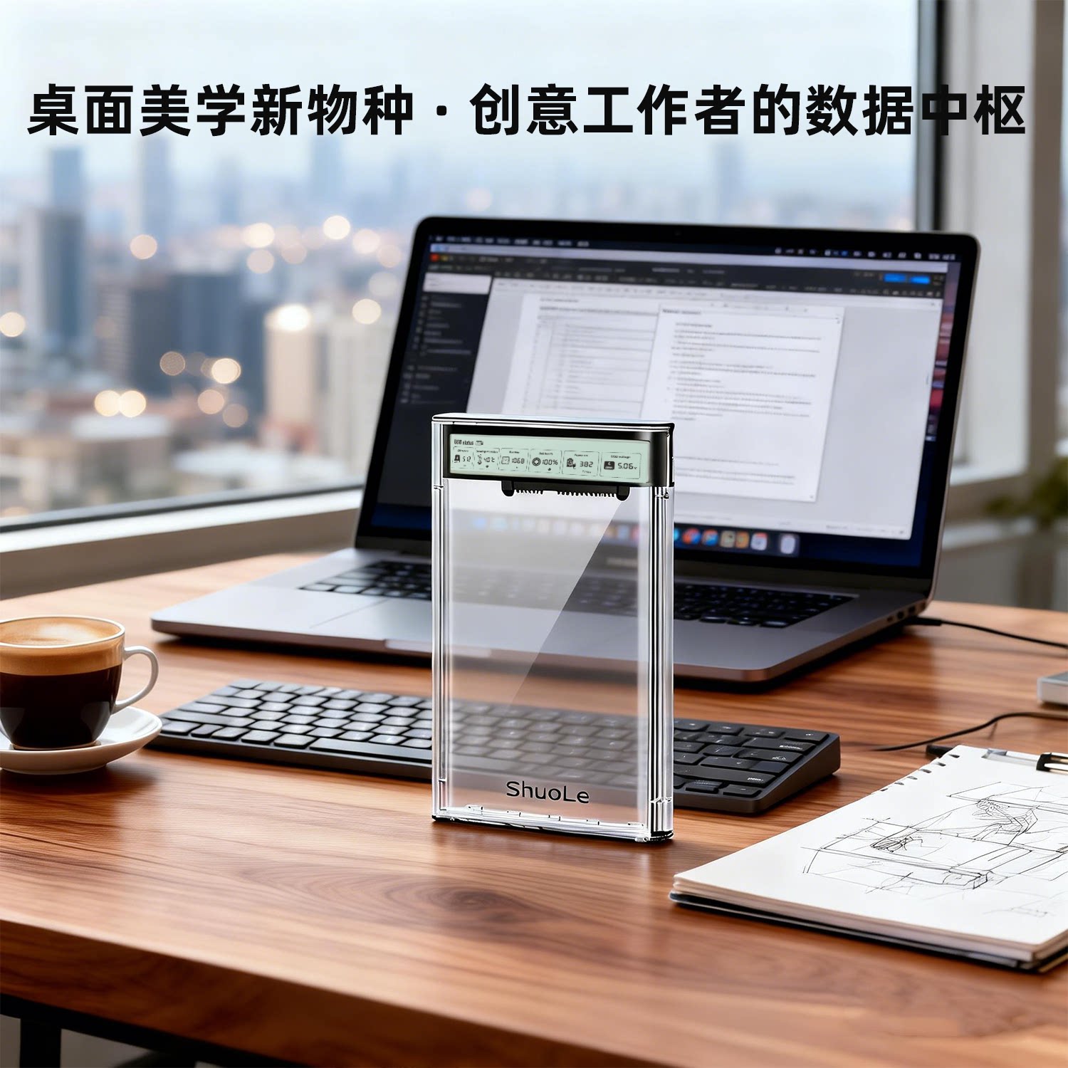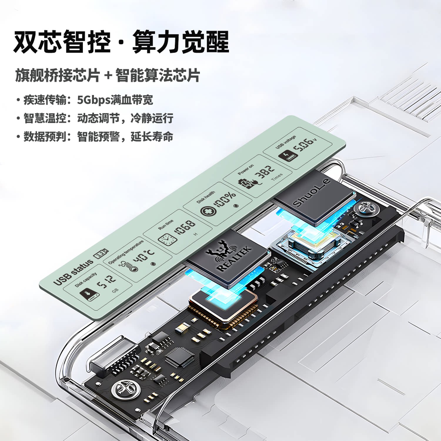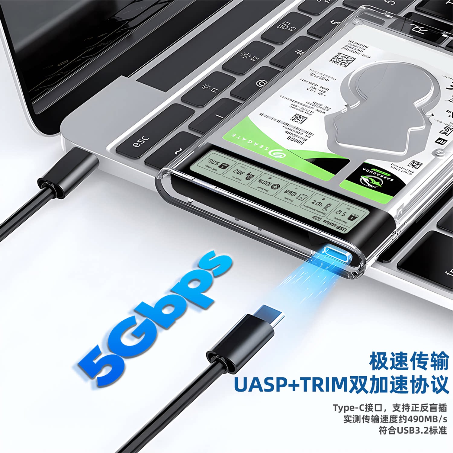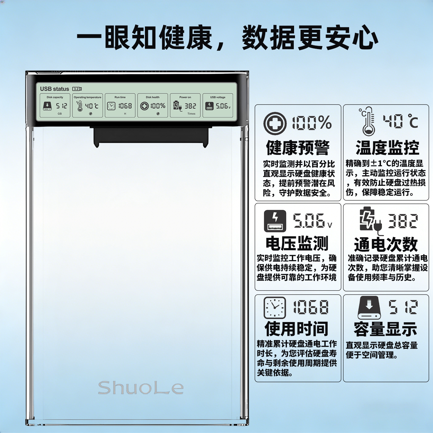 硕乐2.5英寸移动硬盘盒USB3.2数显款 SATA固态外置机械笔记本通用