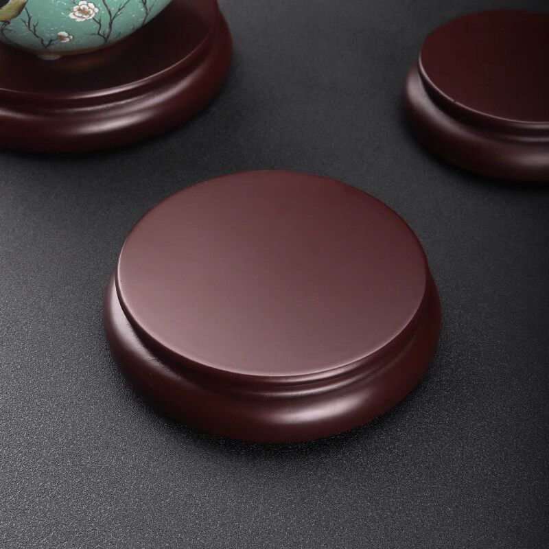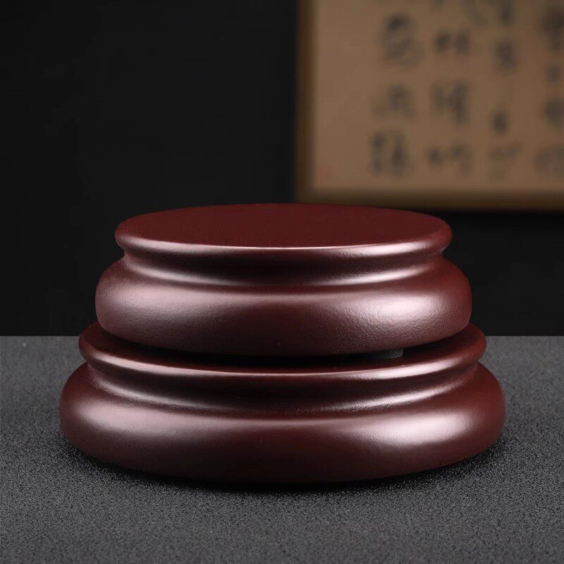 可定制仿红木底座实木圆形花瓶花盆摆件玉石奇石头托架香炉桌面