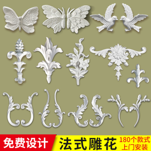 法式 饰浮雕小鸟 pu雕花蝴蝶小花石膏中间角花背景墙线条拼花造型装