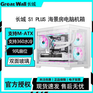 长城S1 主机电脑白色360 PLUS海景房机箱全景侧透无立柱MATX台式