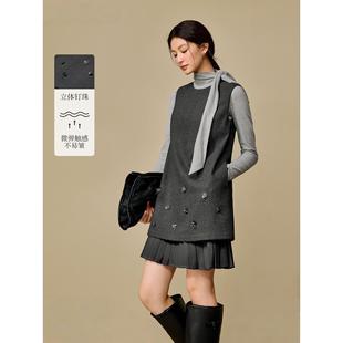 背心长裙 显瘦拼接圆领无袖 格雷系立体钉珠连衣裙女2025年冬季 新款