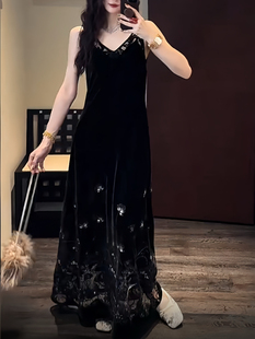 半练带胸垫连衣裙背心裙子黑色长裙吊带裙秋季 打底小黑裙 流行新款