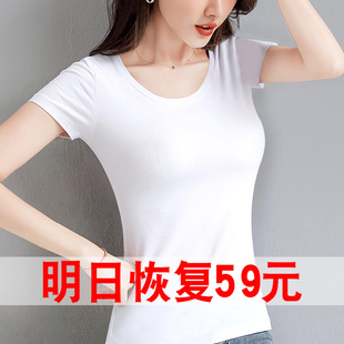 T恤女士夏季 大码 薄款 黑色半袖 上衣 圆领白色内搭打底衫 莫代尔短袖