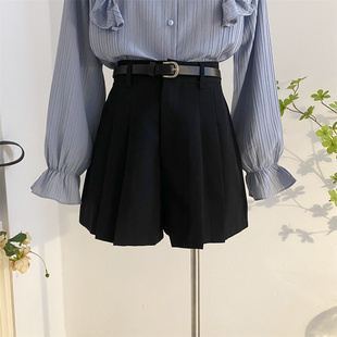 宽松显瘦A字阔腿裤 高腰百褶半身短裙裤 裙 女2024春夏韩版 休闲短裤