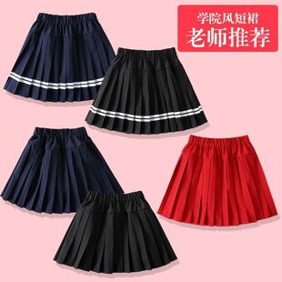 女童半身裙春夏秋季 短裙 女孩百搭白色百褶裙表演裙子黑色韩版