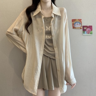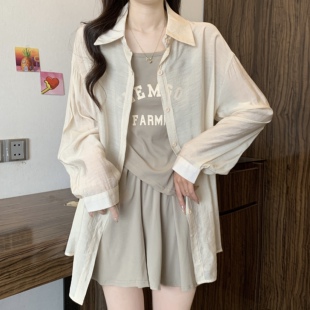 胖妹妹韩版 休闲风翻领衬衫 大码 女夏季 气质穿搭三件套 背心短裙套装