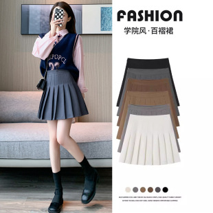 小个子秋冬半身短裙 高腰显瘦春夏季 白色百褶裙女高腰a字新款 韩版