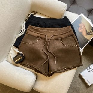 女欧洲站2025冬装 休闲热裤 新款 时尚 潮 欧货女装 羊毛呢加绒阔腿短裤