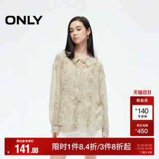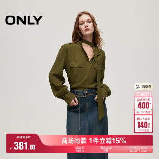 宽松V领系带衬衫 通勤遮肚子时尚 夏季 女 ONLY奥莱