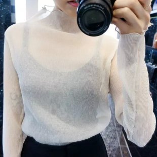 花边高领修身 镂空百搭打底衫 蕾丝衫 气质紧身长袖 上衣潮 女韩版 新款