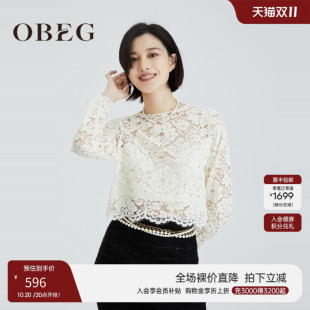 直播 洋气宽松长袖 李子木春款 蕾丝衫 设计感拼接半开领衬衫 法式