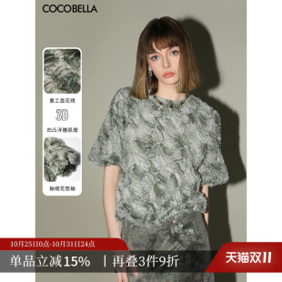 COCOBELLA立体盘花渐变网纱上衣薄荷曼波花苞袖 T恤上衣TS7002 短袖